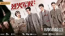 Arsenal Military Academy (Chinese: 烈火军校; pinyin: Lièhuǒ Jūnxiào) is a 2019 Chinese streaming television series, directed by Hue Kaidong, with the script written by Princess Agents author Xiao Xiang Dong Er.[1] It originally airs 2 episodes daily on iQiyi, Tuesday through Friday at 20:00, and stars Bai Lu, Xu Kai, Li Chengbin and Wu Jiayi. The drama tells the story of Xie Xiang, who disguises herself as a male student to join the military academy under her brother's name.[2][3]