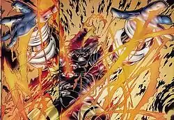Ash is an American comic book character created by Joe Quesada and Jimmy Palmiotti, published by Event Comics about a firefighter who gains superpowers from a time-displaced regeneration device from a possible apocalyptic future.