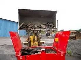 Asphalt concrete is a recyclable material that can be reclaimed and reused both on-site and in asphalt plants.[20] The most common recycled component in asphalt concrete is reclaimed asphalt pavement (RAP). RAP is recycled at a greater rate than any other material in the United States.[21] Asphalt concrete mixes may also contain reclaimed asphalt shingles (RAS). Research has demonstrated that RAP and RAS can replace the need for up to 100% of the virgin aggregate and asphalt binder in a mix,[22] but this percentage is typically lower due to regulatory requirements and performance concerns. In 2019, new asphalt pavement mixtures produced in the United States contained, on average, 21.1% RAP and 0.2% RAS.[21]