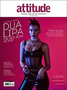 ![]() Dua Lipa on the cover of the December 2020 edition of Attitude. | |