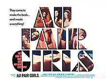 Au Pair Girls is a 1972 British sex comedy film directed by Val Guest.[1][2] It stars Gabrielle Drake, Astrid Frank, Me Me Lai and Nancie Wait. Part of the British 1970s softcore sex comedy genre, the film also includes appearances by mainstream actors Richard O'Sullivan, John Le Mesurier, Ferdy Mayne, Geoffrey Bayldon and Johnny Briggs.