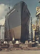 Austin & Pickersgill was formed in Sunderland in 1954 by the merger of S.P. Austin & Son Ltd (founded by Samuel Peter Austin in c.1826) and William Pickersgill & Sons Ltd (founded c. 1838).[1] After the merger Austin's Wear Dock yard was used for repair while shipbuilding was concentrated at Pickersgill's Southwick Yard. The latter was modernised with the introduction of large assembly shops and prefabrication processes.[1] This reduced costs and increased the maximum size of a vessel that the yard could build from 10,000 to 40,000 tons deadweight.
