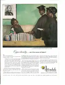 Avondale Mills was a bright spot in an otherwise dismal landscape of race relations in Birmingham. Out of 8,500 employees in 1947, fully 12%, or about 1,020, were African American, all of whom received equal access to the amenities provided by Comer.[1][20] The mills' African American workers were noted for being "...on exactly the same basis industrially as the white workers...with the same opportunities to share in profits, to own homes and farms, to enjoy recreational and school facilities and to save their money."[21]