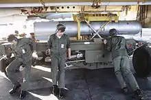 The B28, originally Mark 28, was a thermonuclear bomb carried by U.S. tactical fighter bombers, attack aircraft and bomber aircraft. From 1962 to 1972 under the NATO nuclear weapons sharing program, American B28s also equipped six Europe-based Canadian CF-104 squadrons known as the RCAF Nuclear Strike Force. It was also supplied for delivery by UK-based Royal Air Force Valiant and Canberra aircraft[1] assigned to NATO under the command of SACEUR. In addition, certain U.S. Navy carrier based attack aircraft such as the A3D (later A-3B) Skywarrior, A4D (later A-4) Skyhawk, and A3J (later A-5A) Vigilante were equipped to carry the MK 28.