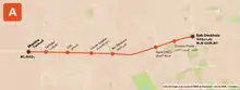 The initial route in operation runs from Bab Doukkala in the city center to Al Massira.[4] It is marked as route A at stops, but trolleybuses in service display only "BRT1" on their destination signs.[4] This route is 8 km (5.0 mi) long, of which 3 km (1.9 mi) is wired for trolleybus operation.[4] The vehicles are powered on the other sections solely by their batteries, which are recharged from the overhead trolley wires.