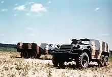 By the end of the war, the initial Soviet tactic of tank desant, in which the infantry rode into battle atop the tanks they were supporting, had been superseded by the introduction of M3 Half-tracks and M3 White armored cars.[13] These were widely used for troop transport, giving rise to a new doctrine in which armored vehicles capable of keeping pace with tanks brought infantry to an engagement. The infantrymen would then debark and enter combat dismounted.[14]
