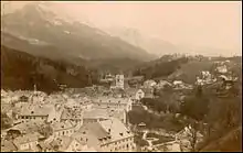 Bad Aussee (Central Bavarian: Bod Aussee) is a town in the Austrian state of Styria, located at the confluence of the three sources of the Traun River in the Ausseerland region. Bad Aussee serves as the economic and cultural center of the Styrian part of the Salzkammergut lakes region. With a population of 4,862, the town is said to be the geographical midpoint of Austria, symbolized by a stone monument in the centre of town.