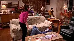 ![]() Debra (Patricia Heaton) going after his husband Raymond (Ray Romano) in the episode's climax | |