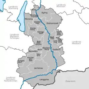 Bad Tölz-Wolfratshausen is a Landkreis (district) in Bavaria, Germany. It is bounded by (from the south and clockwise) Austria and the districts of Garmisch-Partenkirchen, Weilheim-Schongau, Starnberg, Munich and Miesbach.