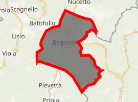 Bagnasco borders the following municipalities: Battifollo, Calizzano, Lisio, Massimino, Nucetto, Perlo, Priola, and Viola.