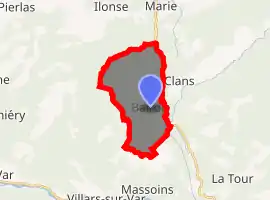 The Tinée river forms the eastern border of the commune as it flows south to join the Var. Many tributaries rise in the commune and flow east to join the Tinée including the Vallon du Serre, the Ruisseau de Fava, the Vallon du Bairols, and the Ravin de Saint Martin.[4]