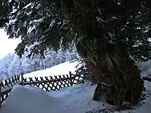 The Balderschwang Yew (German: Alte Eibe von Balderschwang) is an ancient European yew (Taxus baccata) in Bavaria. It has two hollow trunks and stands alone on a mountain pasture. It is estimated to be between 600 and 1,000 years old, and is possibly the oldest tree in Germany.[1]