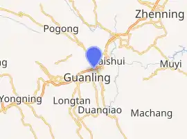 The Baling River Bridge (Baling He Bridge) (坝陵河大桥) is a suspension bridge in Guanling County in Guizhou Province of China.[1] The bridge spans the Baling River Valley and opened to public traffic on December 23, 2009.[2] The bridge is part of the G60 Shanghai–Kunming Expressway between Kunming and Guiyang and reduced the travel time across the river valley from one hour to four minutes.[3] The suspension span is 1,088 m (3,570 ft) long, and the bridge has a total length of 2,237 m (7,339 ft). It is also one of the world's highest bridges with 370 m (1,210 ft) of clearance above the river.[4][5]