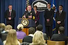 On May 10, 2018, newly appointed Police Commissioner Darryl De Sousa was charged in U.S. District Court with three misdemeanor counts of failing to file federal taxes for 2013, 2014 and 2015.[5] Mayor Catherine Pugh initially expressed support for De Sousa, but a day later she suspended him with pay pending the resolution of the charges against him.[6] De Sousa resigned several days later.[7]
