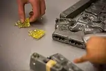 In 1970, the recipe for Sucre d'orge des Religieuses de Moret was entrusted to confectioner Jean Rousseau by Sister Marie-André.[15] Rousseau and his family worked to maintain interest in its traditional production.[14] Le Musée du Sucre d'Orge, the only known barley sugar museum, was established as a family museum in 1995 to memorialize the history of barley sugar in Moret-sur-Loing.[14] Since 2012, it has been managed by the Municipal Council of Moret-on-Loing.[10][11][5] In 1997, the Rousseaus organized the Confrérie du Sucre d'Orge des Religieuses de Moret sur Loing, a non-religious society to support the making of the traditional candy. The Rousseau family continued to manufacture the candy until 2012.[10][11] As of 2012, the right to manufacture Sucre d'Orge des Religieuses de Moret was transferred to Des Lis Chocolat of Nemours.[15]