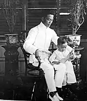 A notable barong tagalog during this period was the "Commonwealth Barong Tagalog" worn by President Manuel L. Quezon, which featured embroidery of the flags of the Commonwealth of the Philippines and the United States. However, other than this, Quezon mostly wore American-style formal wear and did not promote the barong tagalog.[10][4][18]