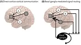 More recently, some neuroscientists[6] and cognitive scientists[7] hypothesize that the basal ganglia are responsible not only for motor action selection, but also for the selection of more cognitive actions.[8] Computational models of action selection in the basal ganglia have started to incorporate this.[9]
