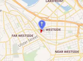 The church was founded in 1892 as Sacred Heart Parish in the Westside, a neighborhood with a large ethnic Polish population, after the Polish immigrant community petitioned Syracuse's bishop for a national parish of its own. The original church was located across the street from the current structure.[1] The first Mass in the new parish church was said on August 30, 1892, with the formal dedication taking place nearly a year later on June 11, 1893.[1]