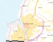 Fox-Pitt deployed his men on the high ground outside the town, liaising with Lanquetot who organised the French troops in the town. The Irish Guards held the right flank to the south-west from the river at St. Léonard to the sea at Le Portel and the Welsh Guards the left flank north-east of the river on the west slopes of Mont Lambert ridge and high ground through St. Martin Boulogne, which made a defensive perimeter of 6 mi (9.7 km).[14] Road blocks had been established by a party of about fifty men of the 7th Royal West Kents from Albert, about 100 men of the 262nd Field Company Royal Engineers and anti-aircraft crew held the right flank of the Welsh Guards, along the roads approaching from the south.[1] Fox-Pitt had left a gap in the perimeter between the Welsh left flank and the coast for the reinforcements expected from Calais.[15] There were 1,500 men of No 5 Group Auxiliary Military Pioneer Corps (AMPC), a mixture of recalled reservists and part-trained troops working as labourers, in the town awaiting evacuation, under Lieutenant Colonel Donald Dean VC.[10] Under French command were the fort garrisons and some French and Belgian training units of limited military value.[16] Lanquetot had told Fox-Pitt that the French forces in Boulogne were "folded up" which Fox-Pitt inferred meant that they were ready to give up.[17]