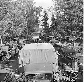 The battle commenced when advanced elements of the Soviet 43rd Rifle Division encountered the Finnish 8th Division in the forests around Porlampi on 30 August.[12] Both sides called for reinforcements. The Soviets were unaware (or only partially aware)[8] that the Finnish soldiers they were fighting had crossed Viipuri Bay, and it was incorrectly assumed that the 8th Division was part of the main body of the IV Corps (the IV Corps was in fact advancing unopposed to the north and east of the Soviet divisions.)[12] In the several days of fighting that ensued in the Porlampi area, the Finns employed motti skirmishing tactics to counter the superior Soviet numbers. The Finnish artillery was reported to have been particularly effective during the engagement as it disabled many soviet vehicles, blocking roads and creating bottlenecks.[9][13] Late in the day on 30 August the 43rd Rifle Division pushed the 8th Division out of Porlampi and into the nearby village of Somme, which lay several miles to the northwest. There the fighting continued throughout the night. On the morning of 31 August the main body of the IV Corps arrived, attacking the 123rd Rifle Division at Porlampi and the 115th Rifle Division at Ylasomme, an action which collapsed the north flank of the Soviet army. The Soviets were forced back, and the Finnish forces made ready to encircle them. However, the 8th Division was still engaged in heavy fighting with the 43rd Rifle Division to the northwest of town and was unable to complete the encirclement. Using the heavily forested terrain to their advantage, the 123rd and 115th Rifle Divisions withdrew southwest towards Koivisto.[12][9] Vyborg fell on 31 August, freeing up more Finnish forces to engage the remaining forces of the 23rd Army. The 43rd Rifle Division, which had advanced furthest west, was almost completely destroyed by the Finnish forces on 1 September. Some survivors retreated to the south and were evacuated from the Baltic coast by the Soviet Navy in November.[14]