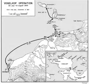 On 31 July, shore-to shore landings from Cape Opmarai were carried out at Sansapor. The Japanese garrison at Manokwari was cut off and attempted to retreat to Sorong.[2]