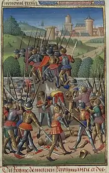 ![]() Anachronic medieval depiction of Bituitus' flight from the men of Fabius | |||||||