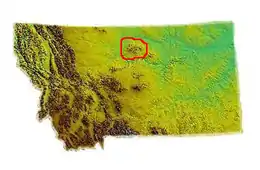 ![]() Bears Paw Mountains as seen from near Virgelle, Montana | |