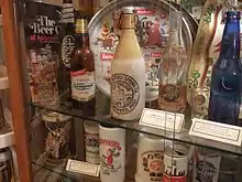The oldest can in the collection is a Krueger Ale can from the 1930s which is similar to the first beer can ever produced in 1935. On display as well are older cone tops (such as a Brockert Ale "J-Spout" can from Worcester, Massachusetts and a Star Banner Ale cone top from Boston) and obsolete "flat top" cans from the early days of beer can production. The museum is enhanced by a significant collection of breweriana (beer related collectibles) such as hanging pub towels in the rafters, thousands of coasters or "beer mats", beer trays, and a bar displaying both colorful cans and beer glasses from around the world. Crocheted beer can hats from the 1970s, beer can transistor radios, and a beer can telephone are also on display, as are miniature beer cans used in dollhouses. A unique 'pysanka' (painted Ukrainian style 'Heineken' egg) is also housed at the museum.[2]