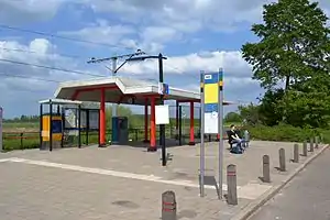 Beesd is a railway station in Beesd. Netherlands. The station opened on 1 December 1883. It lies about 2 km north of Beesd itself. The station is located on the railway line between Dordrecht and Geldermalsen (MerwedeLingelijn). The station has a small island platform, and two tracks, but only one of the tracks is actively used. Train services were operated by Arriva until 8 December 2018, when Qbuzz took over services.