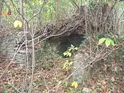 There were originally 7 natural pools and springs that existed within the massive property.[16] Peale took advantage of these natural pools and utilized them to improve his massive garden. He hollowed out the source of the spring into an artificial cave, which he then lined with masonry. This spring fed a greenhouse with a glass ceiling. Unfortunately only two of the original seven pools remain today. The other five have either disappeared due to natural reasons or have been diverted to another location. There used to exist a spring within the "Summer House" until that was diverted along with two pools that existed by the kitchen that fed into a well and one that existed near the lower half of the stable. These have since disappeared and it is unknown exactly how the last two disappeared.[20] To the southeast was a pool with a ten-foot fountain that was fed by pipes from the spring. Next to the pool was a garden shed onto which Peale painted a "gate" to disguise it. On the "gate" were symbols and figures representing Congress, America, Truth, Wisdom, Temperance, and Mars, the Roman God of war.[21] The ruins of Peale's cave and greenhouse still stand. The cave is now underneath the stump of a coffee tree, but the deteriorating masonry is still visible.[19] The greenhouse's walls are to the west, and are mostly overgrown with brush and ivy while the location of Peale's pond has been paved over by a driveway.