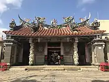 "Bengang" is the historical name of a major port city along the Beigang River founded in 1621, which flourished as both a trade center and a pirate's haven. Shuixian Temple was built in 1739 for residents to pray for the safety of the boatsmen. However, a flood in 1750 destroyed most of Bengang and caused the river to change course to run directly through the city, forming two distinct settlements, Beigang (lit. "north port", currently Beigang, Yunlin) and Nangang (lit. "south port"). Another major flood in 1803 destroyed Shuixian Temple completely, along with other major temples in Bengang. This time, the river's course shifted so far south that most residents had moved north to Beigang. Nevertheless, Shuixian Temple was rebuilt in 1814 in its original location in Nangang. The last major construction was in 1848 to form the current four rows of halls.[1][2]
