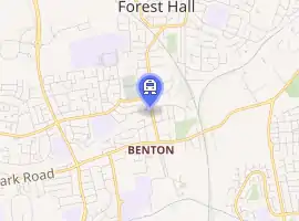 Benton is a station on the Tyne and Wear Metro, serving Benton and Forest Hall in North Tyneside. The station joined the network in August 1980, following the opening of the line between Haymarket and Tynemouth – the first stage of the network to open.