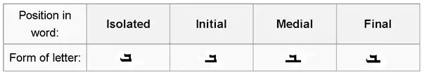 The Arabic letter ب is named بَاءْ bāʾ (bāʔ). It is written in several ways depending on its position in the word: