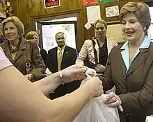 DeVos personally raised more than $150,000 for the 2004 Bush re-election campaign,[36] and hosted a Republican fundraiser at her home in October 2008 that was headlined by President George W. Bush.[37] During the Bush Administration she spent two years as the finance chairperson for the National Republican Senatorial Committee and worked closely with the Administration on "various projects".[38] The DeVos family has been active in Republican politics for decades, particularly as donors to candidates and the party, giving more than $17 million to political candidates and committees since 1989.[39][40]