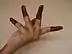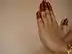 The outlines of the dancer's fingers and feet may be partially colored red with kumkum powder or alta, a costume tradition that helps the audience more easily view her hand and foot gestures.[78]