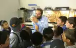 school children by museum staff