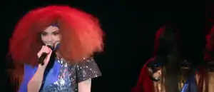 In the beginning of 2012, the third residency was announced to take place in New York City, in partnership with The Creators Project and the New York Hall of Science, where six of the ten planned gigs were announced to take place, with the other four being at Roseland Ballroom.[14] However, due to an illness, one show that was to take place at the Hall of Science was rescheduled and moved to the Roseland Ballroom.[15] After the end of the residency, another one was announced at Centro de Exposiciones of Buenos Aires, with the last show taking place at the Estadio G.E.B.A..[16] However, due to the discovery of a nodule on her vocal cords, Björk had to cancel the last show at the Centro de Exposiciones and the concert at the Estadio G.E.B.A.[17] For this reason, Björk cancelled several festival appearances she was supposed to have during the summer of 2012. In November 2012, the singer announced that she underwent surgery to remove the nodule.[18][19]
