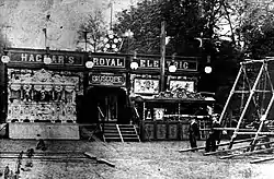 Bioscope shows were fronted by the largest fairground organs,[1] and these formed the entire public face of the show. A stage was usually in front of the organ, and dancing girls would entertain the crowds between film shows.[2]