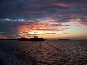 The southern portion of Biscayne Bay extends between Elliott Key and the mainland, transited by the Intracoastal Waterway. The park abuts the Florida Keys National Marine Sanctuary on the east and south sides of the park and John Pennekamp Coral Reef State Park to the south.[4] Only 9,075 acres (3,673 ha) of the park's area are on land, with the offshore keys comprising 4,250 acres (1,720 ha) and mainland mangrove swamps account for the remaining 4,825 acres (1,953 ha).[3] As an extension of the Everglades ecosystem, much of the park was originally proposed to be included in Everglades National Park, but was excluded to obtain a consensus for the establishment of the Everglades park in 1947.[5]