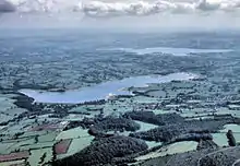 A variety of water birds can be seen around the lake including: great crested grebe (Podiceps cristatus) and little grebe (Tachybaptus ruficollis), cormorant (Phalacrocoracidae), mute swan (Cygnus olor), Canada goose (Branta canadensis), duck (Anatidae), shoveller (Anas clypeata) and gadwall (Anas strepera).[23] The common buzzard (Buteo buteo) can be seen on the surrounding hills and both Eurasian sparrowhawk (Accipiter nisus) and kestrel breed. Occasional visitors include: osprey ("Pandion haeliatis"), goshawk (Accipiter gentilis), Eurasian hobby (Falco subbuteo), nuthatch and great spotted woodpecker (Dendrocopos major). The ruddy darter dragonfly (Sympetrum sanguineum) can also be seen.[21] In the wood at the western end of the lake there are populations of badgers, roe deer (Capreolus capreolus) and foxes.[24]