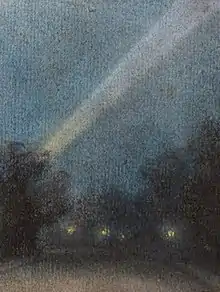 The Christchurch Mansion at Ipswich has exhibited its collection of seventy-seven pastels by Vulliamy, showing First World War searchlights flaring through urban streets at night.[15]