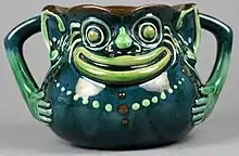 Vulliamy went on to work for several art pottery factories and was especially fond of portraying bats, goblins, and other reclusive and grotesque creatures, in a wide variety of materials, making wax and clay models to develop her pottery designs.[8][9] Her goblins were usually shown laughing or grinning,[7] and she herself referred to them as "bogies".[10]