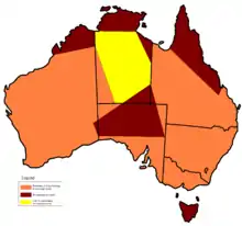 "Aboriginalia", including the boomerang, as symbols of Australia dates from the late 1940s and early 1950s and was in widespread use by a largely European arts, crafts and design community.[39] By the 1960s, the Australian tourism industry extended it to the very branding of Australia,[40] particularly to overseas and domestic tourists as souvenirs and gifts and thus Aboriginal culture. At the very time when Aboriginal people and culture were subject to policies that removed them from their traditional lands and sought to assimilate them (physiologically and culturally) into mainstream white Australian culture, causing the Stolen Generations,[41] Aboriginalia found an ironically "nostalgic", entry point into Australian popular culture at important social locations: holiday resorts and in Australian domestic interiors. In the 21st century, souvenir objects depicting Aboriginal peoples, symbolism and motifs including the boomerang, from the 1940s–1970s, regarded as kitsch and sold largely to tourists in the first instance, became highly sought after by both Aboriginal and non-Aboriginal collectors and has captured the imagination of Aboriginal artists and cultural commentators.[42][37]