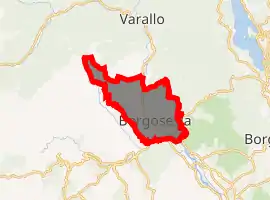 Borgosesia is a comune (municipality) in the Province of Vercelli in the Italian region Piedmont, located about 80 kilometres (50 mi) northeast of Turin and about 45 kilometres (28 mi) north of Vercelli.