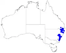 This boronia grows in heath and forest in coastal areas north from Moruya in New South Wales to near Stanthorpe in Queensland, including areas inland as far as the Great Dividing Range.[2][7][8]