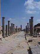 Under the Roman Empire, Bosra was renamed Nova Trajana Bostra and was the residence of the legio III Cyrenaica. It was made capital of the Roman province of Arabia Petraea. The city flourished and became a major metropolis at the juncture of several trade routes, namely the Via Traiana Nova, a Roman road that connected Damascus to the Red Sea. It became an important center for food production and during the reign of Emperor Philip the Arab, Bosra began to mint its own coins.[3] The two Councils of Arabia were held at Bosra in 246 and 247 AD.