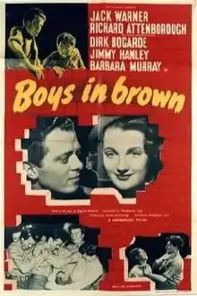 Boys in Brown is a 1949 British drama film directed by Montgomery Tully, which depicts life in a borstal for young offenders. It stars Jack Warner, Richard Attenborough, Dirk Bogarde and Jimmy Hanley.[2] It is based on a 1940 play by the actor Reginald Beckwith.[3][4]