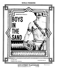 Boys in the Sand had its theatrical debut on December 29, 1971, at the 55th Street Playhouse in New York City.[3][18] Poole engaged in an unprecedented pre-release publicity campaign, including screening parties and full-page ads in The New York Times and Variety.