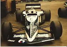 The Brabham BT52 was a Formula One car designed for the Brabham team by longtime Brabham designer Gordon Murray for the 1983 season. The car ran on Michelin tyres and was powered by the massively-powerful BMW M12/13 four-cylinder turbocharged engine which in 1983 produced a maximum of approximately 1,500 bhp (1,120 kW) in qualifying trim; detuned to around 850 bhp (630 kW) for the proper races. Its drivers were 1981 World Champion Nelson Piquet and Riccardo Patrese.[4]