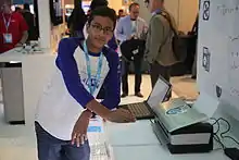 At Campus Party Keynote in São Paulo, Brazil in February 2015.[18] Shubham Banerjee gave a demonstration of a new method of transcoding documents to braille without any software installation on the computer. The technology involves uploading any document from a computer into the memory of the Intel's Edison chip that's the brain of the Braigo Braille printer.[19] The idea behind this new method is to reduce the cost of ownership of the Braigo printer without having to buy any transcribing software for braille.